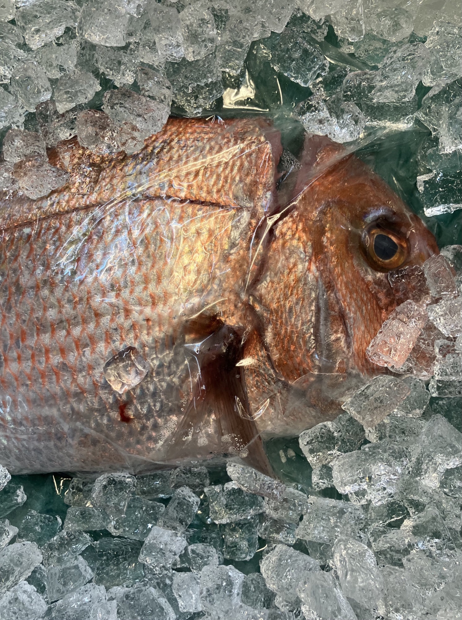『宮城荒浜沖獲り天然真鯛活〆』 昨日、宮城の荒浜沖で網に掛かっていた『天然真鯛』を「活〆」にしておきました♪ 今日は好ぃ感じの「天然活〆真鯛のお刺身」を召し上がって頂きます♪ (⌒▽⌒) ちなみに明日はお休みを頂きます。