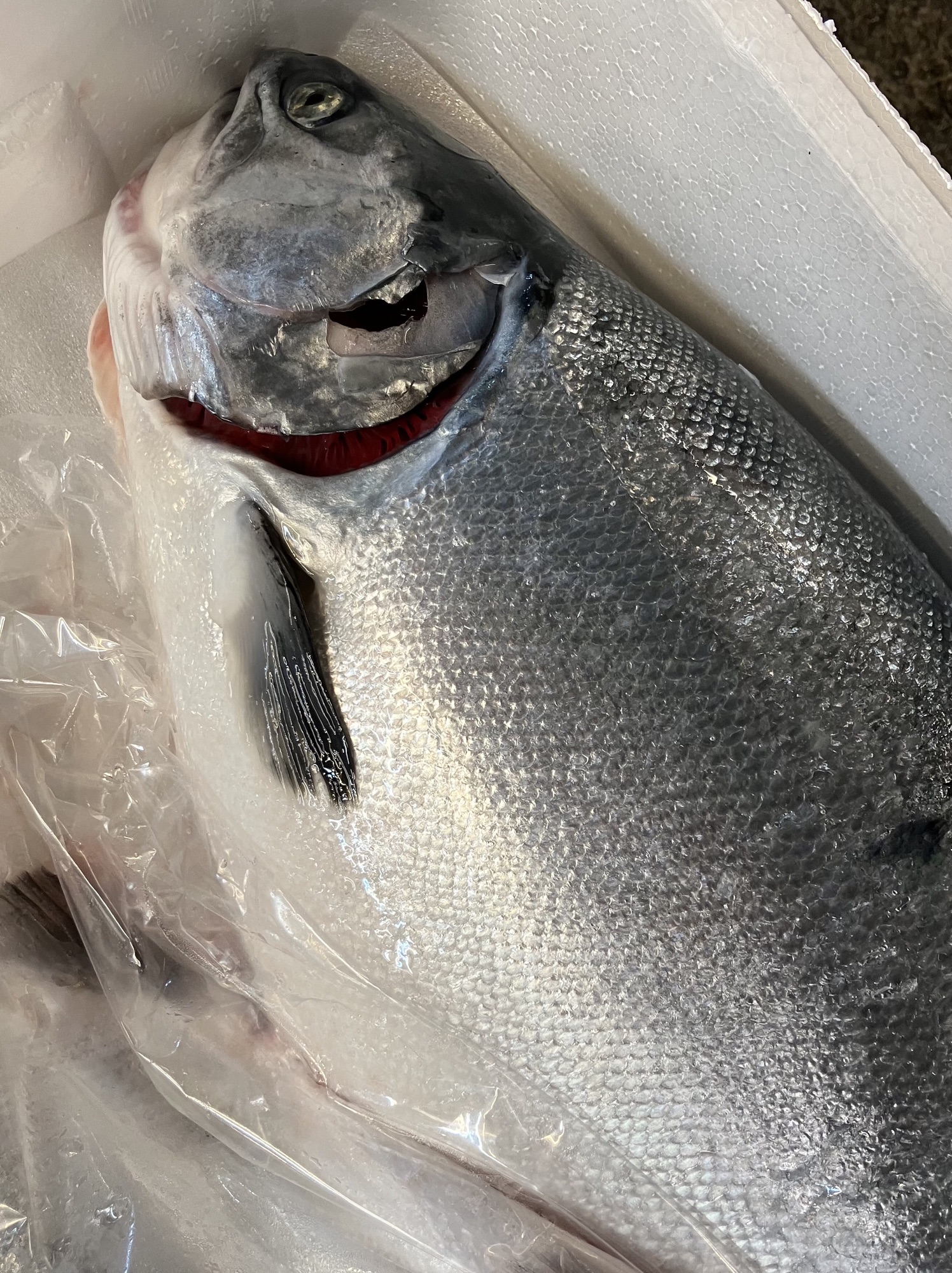 『宮城サーモン』 今日は朝から雨模様。海も荒れ始めています。 こんな時に力を発揮するのが養殖事業の魚達ですね♪ そして今朝♪ 石巻の生簀で美味しそうに育っていた『宮城サーモン』が入って来ました♪ 最近の養殖技術の向上はブランド化される程目覚ましいものがあります。 今回はその中から体型もさるものながら『宮城サーモン』が美味しそうでしたから、 頂いてきたので味わいを楽しみましょう♪ (⌒▽⌒)
