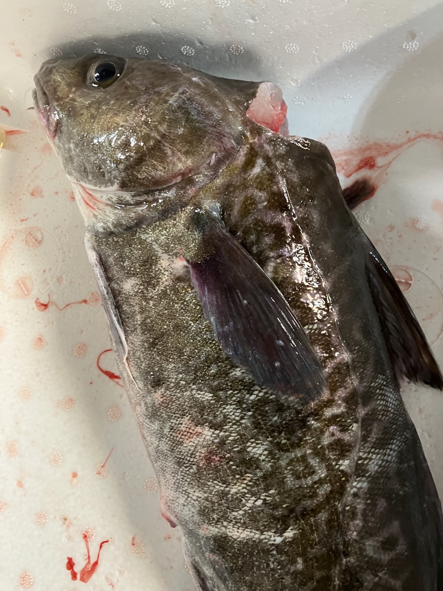 『活〆真鱈』 金華山沖から「活きたままの真鱈」が入ってきました♪ 「真鱈の活物」はなかなか水揚げされてはきませんが、 入ってきたなら勿論最高の鮮度なので直ぐに「活〆」に♪ という事で今日は「美味しい真鱈のお刺身」を頂く事となりました♪ (^∇^)