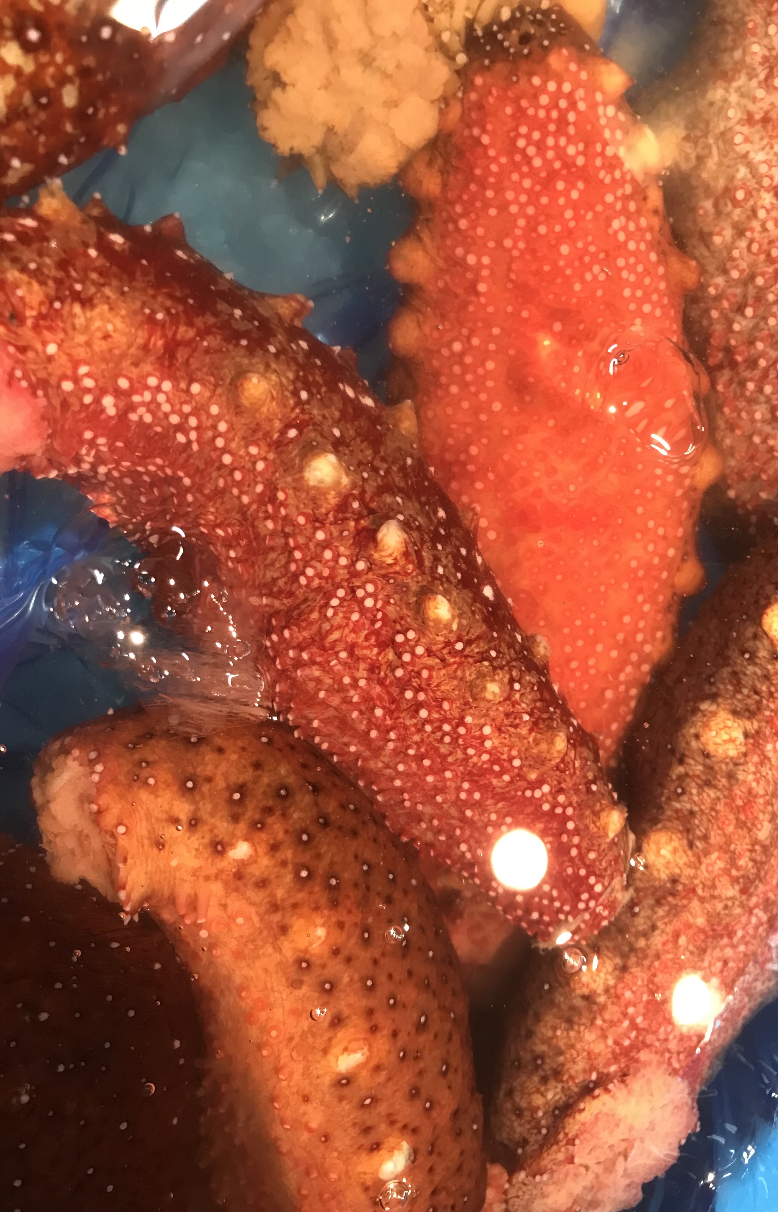 『七ヶ浜の活物赤ナマコ』 関東以西では 温かい季節に「ナマコ」を召し上がるようですが、 宮城の場合、 地場物ナマコは冬場に漁って市場に出廻わり食べるのが「ナマコ」です♪ しかも今朝は「地物ナマコ」の中でも美味しいと評されている 「赤ナマコ」が水揚げされて来ました♪ (^∇^)