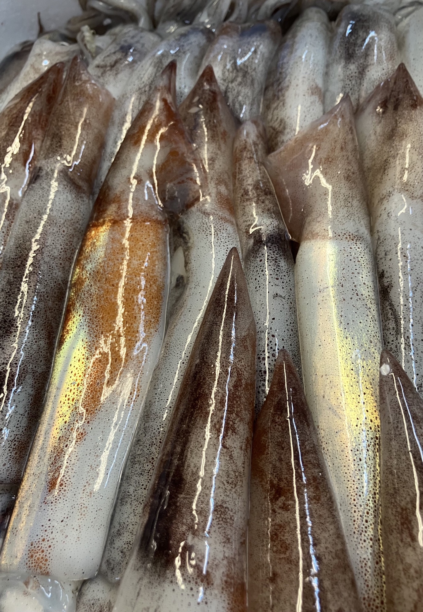 『塩竈沖獲り真イカ』 最近宮城沖では『真イカ』の漁が良いようです♪ 今朝は『塩竈沖獲り物の真イカ』が水揚げされて売り場に沢山並んでいました♪ 漁場と競り場との距離が短い事もあって、鮮度なんかも抜群の「真イカ」です♪ (^∇^)