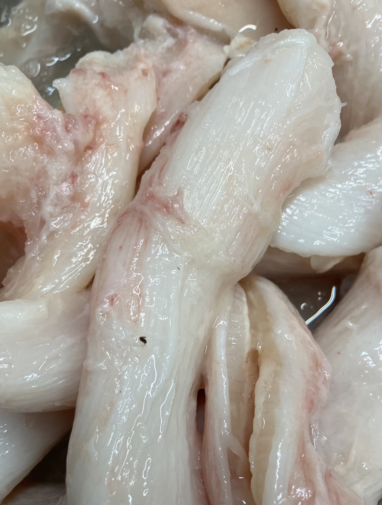 『気仙沼沖獲りマンボウの腸』 この写真を見ただけでは判り難いですよね。 これは気仙沼沖で獲れた『マンボウの腸』の写真なんです♪ なんとも言えないコリコリ感シャクシャク感♪ 珍しいので美味しく頂きましょう♪ (^∇^)