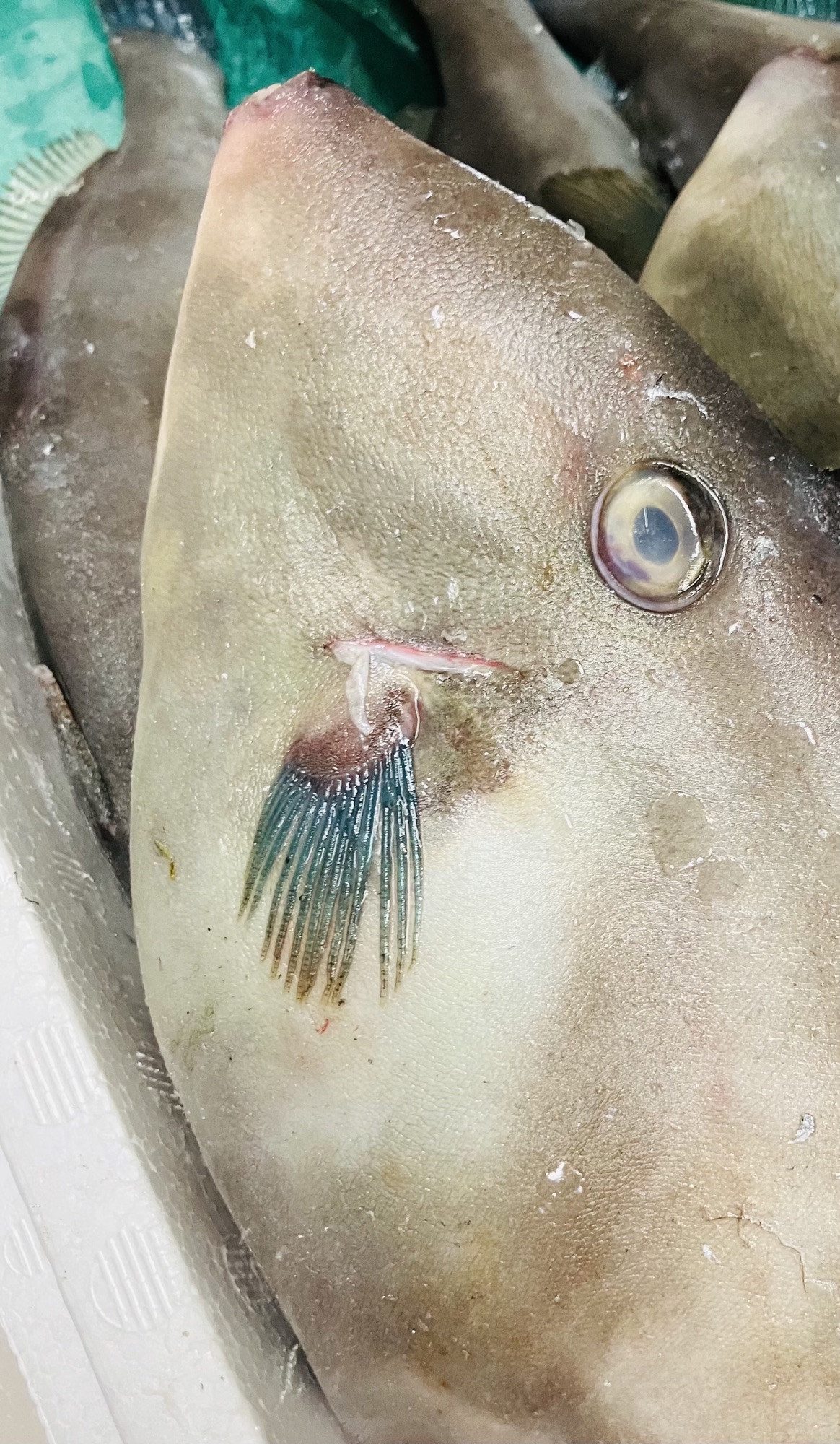 『活〆カワハギ(ウマズラ)』 おもっきり美味しそうに太った『釣り漁カワハギ(ウマズラ)』が 仙台湾からやって来ました♪ 肝も期待値大!ですね♪ (^∇^)