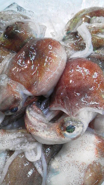 『坊主イカ』♪地元宮城では「耳蛸」の愛称で呼ばれている晩春から初夏の 産卵期に旬を迎え、東北太平洋沿岸で獲れる「タコに見える小さなイカ」♪ なんです♪蛸に似た形で、小さく丸い胴体にイカのミミが耳に見える形状♪また、頭部がお団子のように丸くて、小さな坊主に見えるところから、 「団子イカ」とも「坊主イカ」とも呼ばれ旬に珍重される希少なイカでなんです♪ 今朝は金華山沖から来ました♪通称「耳蛸」♪お楽しみ下さい♪(⌒‐⌒)