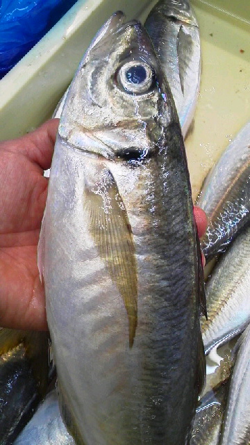 地元七ヶ浜の釣り漁で♪とっても美味しそうな『真アジ』が掛かりました♪ 「地アジ」としては久しぶりに脂もノッテイル♪立派なサイズのアジです♪ 「アジのタタキ」なんかも好いですねぇ〜♪お楽しみ下さい♪(⌒‐⌒)